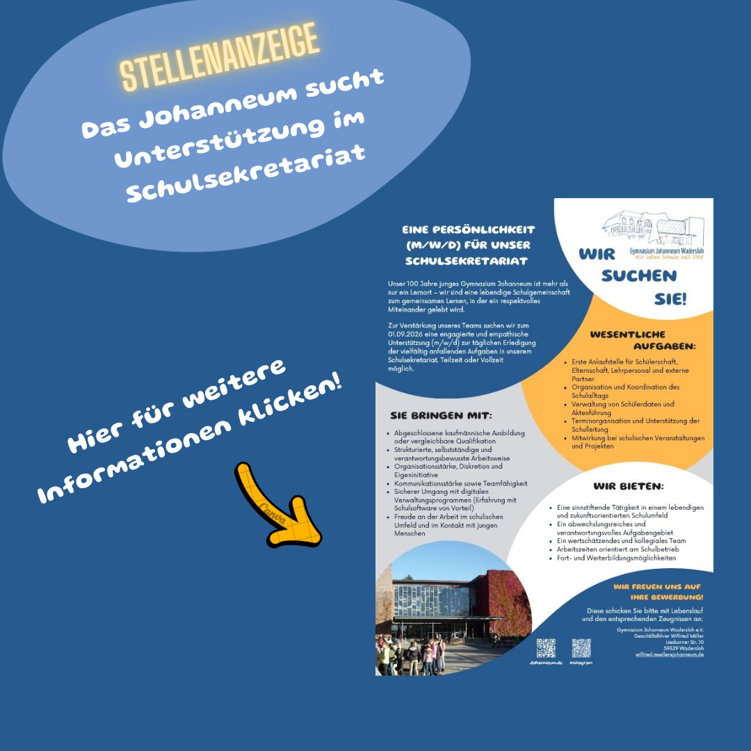 Im Rahmen der Berufsorientierung am Johanneum besuchten am 7. März 2026 42 Ehemalige – so viele wie noch nie – ihre alte Schule, um von ihren Erfahrungen aus „erster Hand“ in Studium und Beruf zu berichten. Bereits im Vorfeld hatten die Schülerinnen und Schüler...