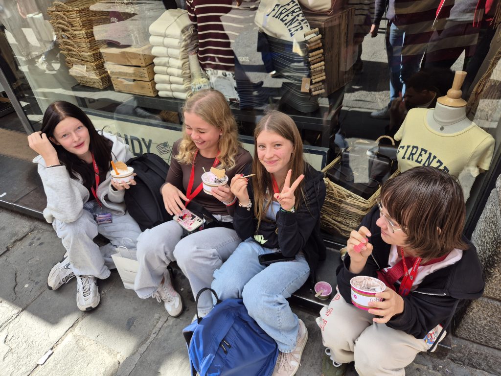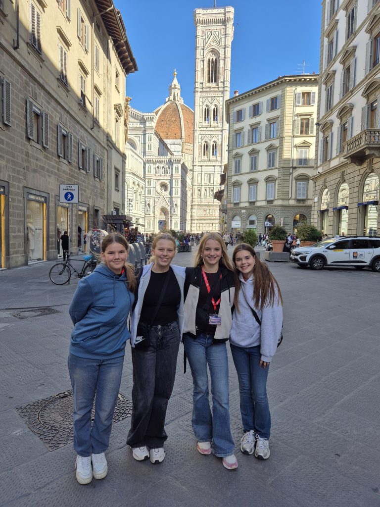 Aber schon vor der Abfahrt meinte das Wetter es wieder gut mit uns, sodass wir Florenz in vollen Zügen genießen konnten. Zuerst gab es Führungen für die Unter- und Mittelstufe durch die fleißigen Schülerinnen und Schüler aus der EP und der Q1.