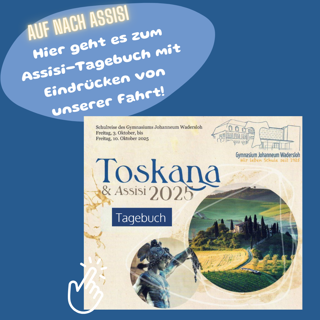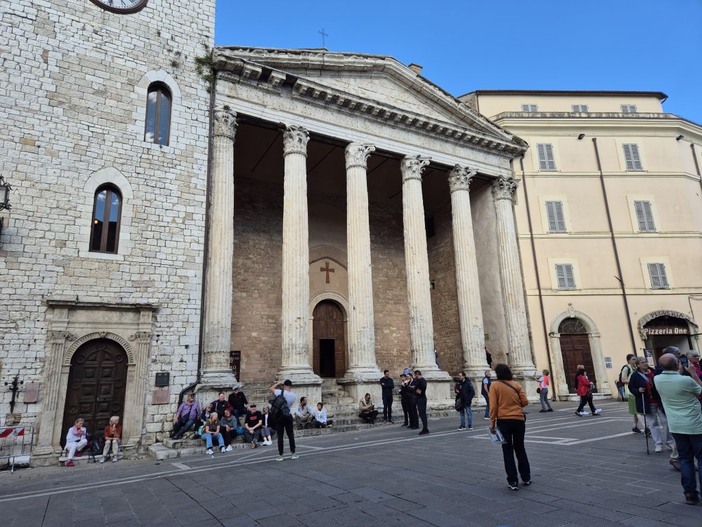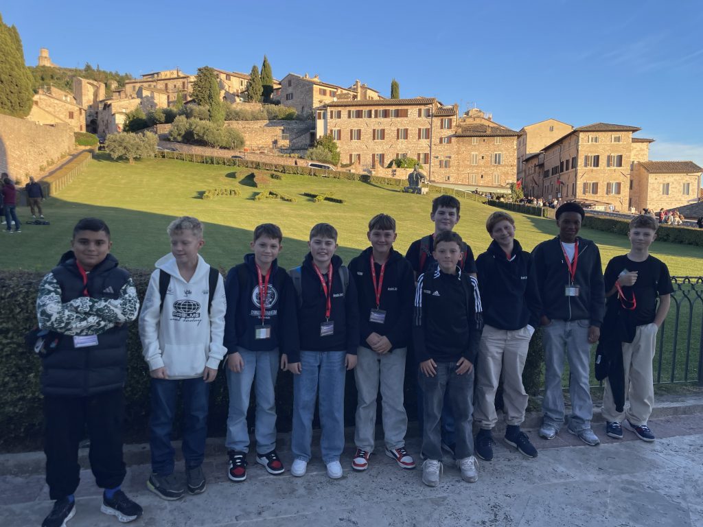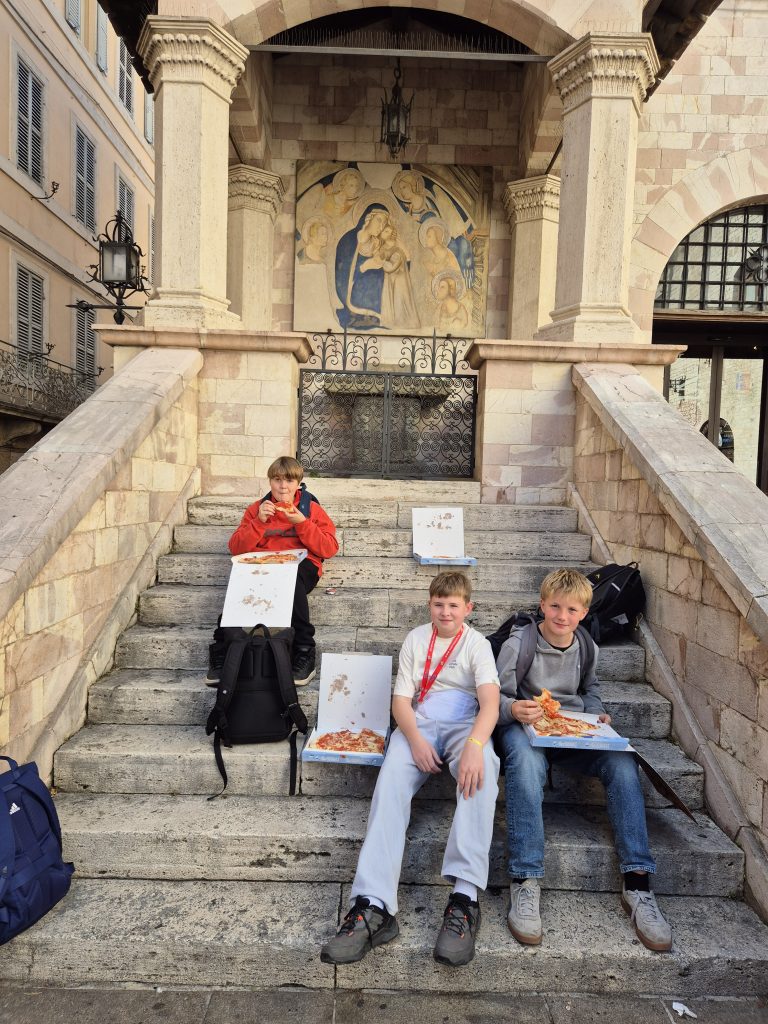 Heute ging es in den Heimatort von Franz von Assisi. Und diese Stadt war gleich aus mehreren Gründen eine Reise wert. Zum einen dienen die franziskanischen Werte unserer Schule als pädagogisches Leitbild, sodass ein Besuch der Basilika San Francesco sich anbot, wo der Heilige Franz von Assisi auch seine Grabstätte hat. Doch auch abseits der religiösen Bedeutung des Ortes bot Assisi viel Sehenswertes.