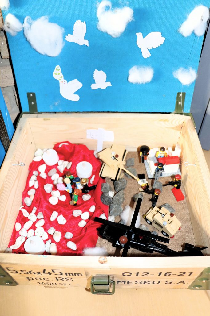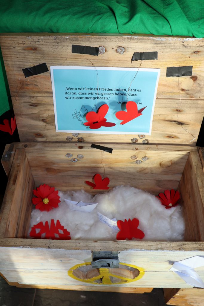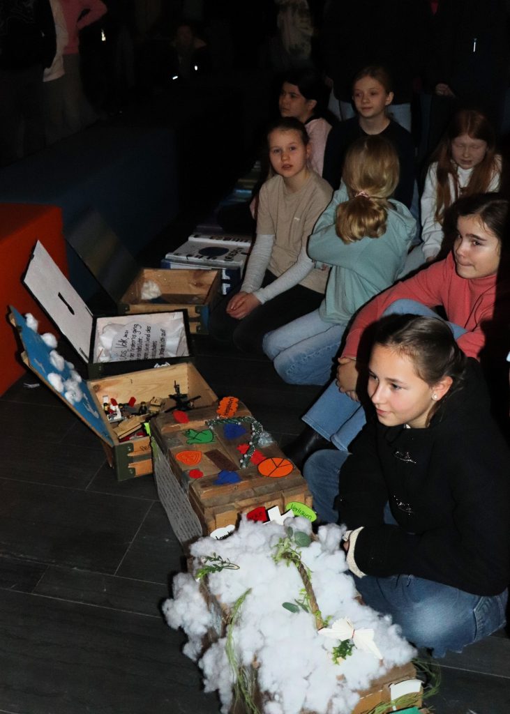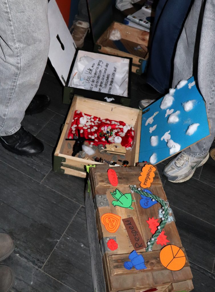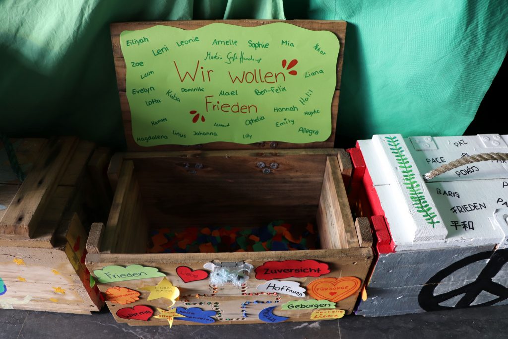 Der Schulstart im neuen Kalenderjahr 2026 wurde mit einem gemeinsamen Impuls in der Aula eingeleitet. Dabei standen die Friedenskisten, die von den Schülerinnen und Schülern erstellt wurden, im Mittelpunkt des Impulses. Hier einige Eindrücke aus der Aula und von den schönen Schülerarbeiten: