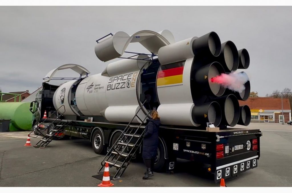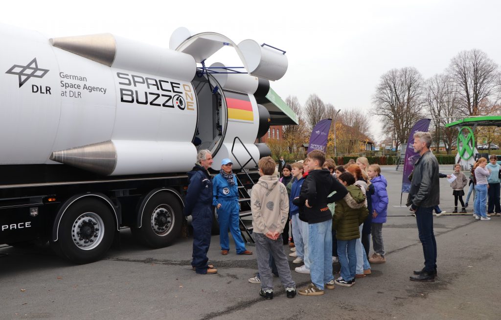Am Freitag, den 14. November 2025 machte der SPACEBUZZ ONE des Deutschen Zentrums für Luft- und Raumfahrt (DLR) Halt am Gymnasium Johanneum in Wadersloh und verwandelte den nahe gelegenen Raiffeisen-Parkplatz für einen Tag in eine beeindruckende Startrampe ins All.