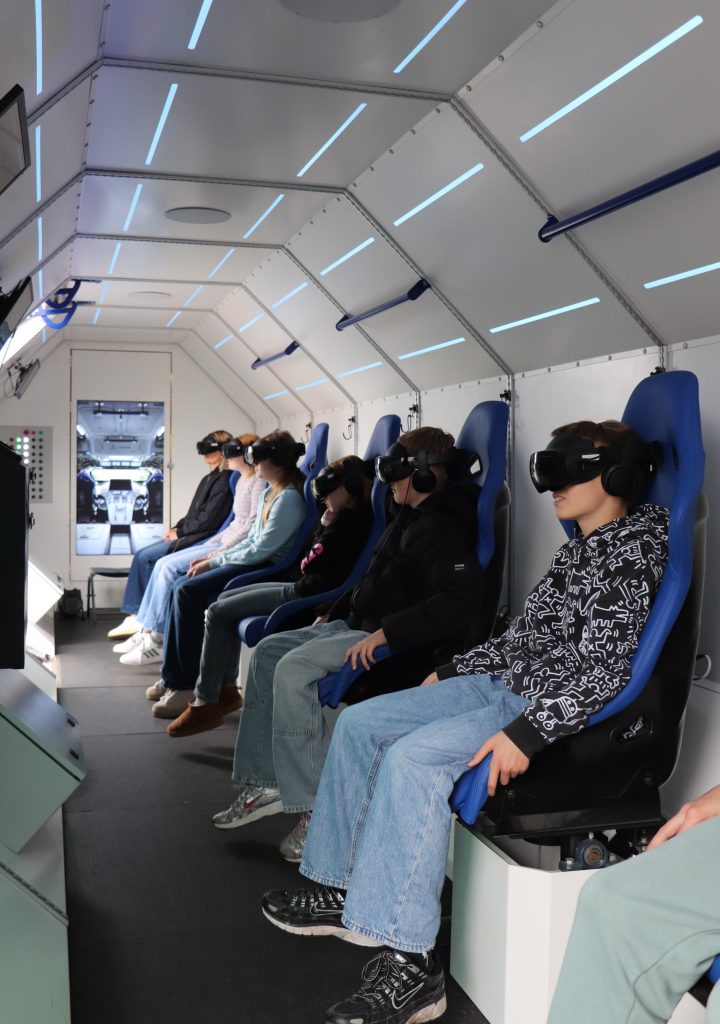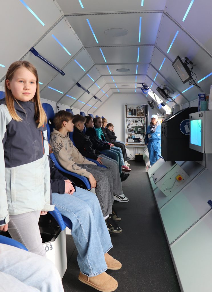 Schon von außen sorgte der raketenförmige SPACEBUZZ ONE für Begeisterung. Im Inneren erwartete die jungen Nachwuchs-Astronautinnen und -Astronauten eine immersive High-Tech-Erfahrung: In einer speziell entwickelten Raumkapsel mit 360°-Bildschirm, beweglichen Sitzen und realistischem Sounddesign konnten sie den Start einer Rakete miterleben, die Erde langsam kleiner werden sehen und schließlich im Orbit schweben. Für rund 15 Minuten tauchten sie so in die Rolle echter Raumfahrerinnen und Raumfahrer ein.